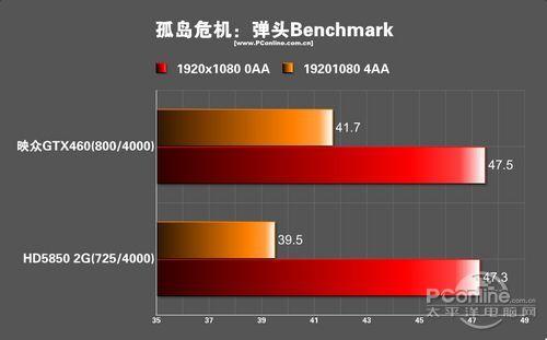 孤岛危机在映众GTX460面前已经成不了显卡危机,全程画面十分流畅,而大约2~3帧的优势领先于HD5850。