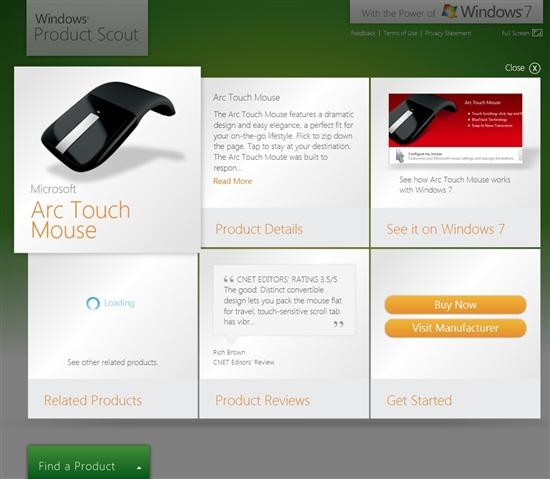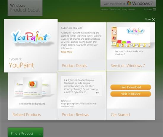 当前微软在该页面中为用户提供了58种产品,包括一系列专为Windows Touch优化的应用程序、触摸监视器、照相机、电视、开发应用程序等,合作伙伴包括亚马逊、D-Link、WildTangent、爱普生、索尼、Seesmic、东芝等。