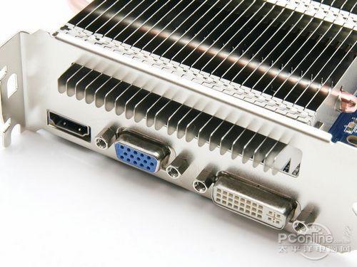 显卡接口方面,该卡接口方案满足众多用户需求,采用VGA/DVI/HDMI组合,并且显卡整合了7.1数字声卡,支持源码输出,用户很方便就能实现HDMI一线输出。