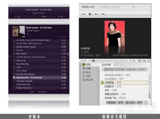 新版本界面相比旧版来看,透明效果不再那么明显,整体界面更加大众化,更加简洁,新版的界面引起了不少用户的讨论。据说此概念验证版截图中是在播放在线音乐(和最终版本肯定有巨大差异)。