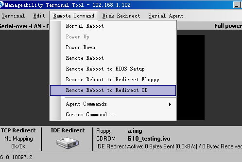 在控制了电脑的屏幕,键盘和鼠标后,对于管理员来讲还差两样东西——电源按钮和启动光盘。在博锐平台上,IT可以远程执行开关机,可以把光盘做成镜像后启动目标主机,这一功能在AMT中被称为SOL/IDE-R(Serial-Over-LAN/IDE Redirection)。