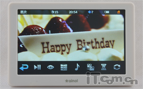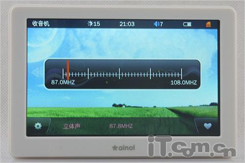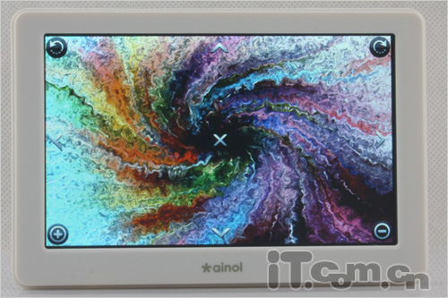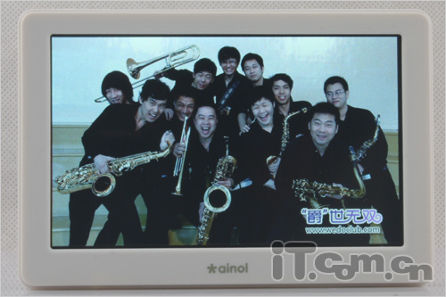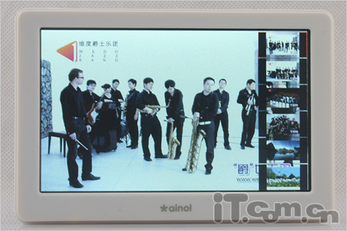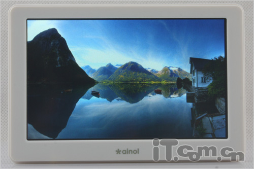 艾诺V5000HDG采用5英寸的彩屏,拥有高达800×480分辨率输出,保证画质的细腻。接下来我们用它来浏览照片,进行简单的测试。在图片功能下,自动播放、放大缩小、背景音乐、旋转、桌面图片功能选项一应俱全。艾诺V5000HDG的缩略图浏览方式特别,在屏幕右侧右手指滑动,就可以滚动播放。