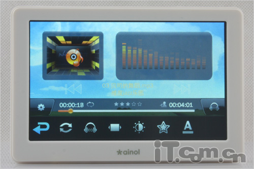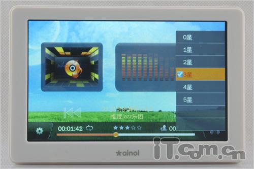除了MP3、WMA、WAV等常见格式之外,艾诺V5000HDG还能兼容FLAC和APE无损音源,展示出更多的细节。其播放界面信息齐全,支持歌曲名称、歌词、星级评定、频谱等显示。