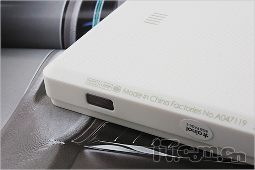 机身的背面左右两侧,都有一个扬声器,能营造出更洪亮、立体的声音输出。值得一提的是,艾诺V5000HDG的背面面板有许多粒状凸起,双手持握机身的时候,不容易滑落。这方面,体现出设计者的独具匠心。