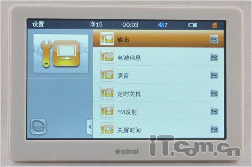 在系统设置中,艾诺V5000HDG提供多种输出设置,电池信息可以让玩家清楚了解当前的电量。还能根据需要关闭按键音、震动反馈模式,定时关机、关闭屏幕、语言等一应俱全。