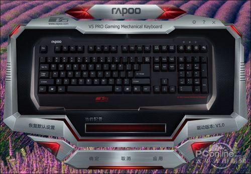雷柏 V5键盘自带的驱动外观比较酷,很有棱角感。在驱动中,可以为按键设定不同的与默认的按键功能。