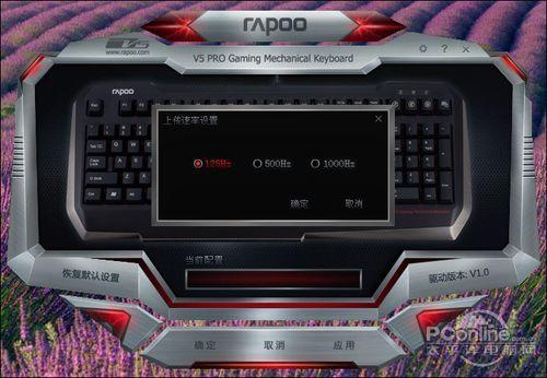 配置文件对于键盘是很重要的,因为键盘在默认状态下按键功能不能改变,只有在不同的配置文件中才可以改设按键的功能,才启动配置文件的时候,还需要键盘上的模式切换按键实现。配置文件可以保持在键盘的内存中,即使到另一台电脑上,直接插上键盘也可以使用已经配置好的文件,而不用安装驱动程序。雷柏 V5键盘可以保存六套不同的配置,以适应不同的游戏和使用需要。