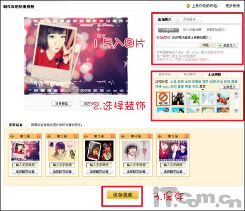 5、照片美化处理完毕后,就可以开始制作动感影集啦~!时下很多网站都有制作影集的功能、制作方法也差不多。例如QQ空间、土豆网等。