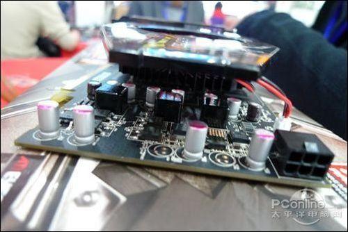 这款显卡采用热管散热器加上大口径的散热风扇可以提供非常出色的散热能力,确保显卡在高频率状态下运行稳定。讯景HD-575X-YHF黄金版需要外接一个6pin的供电,显卡的供电部分采用全固态电容和封闭式电感,做工用料相当出色。