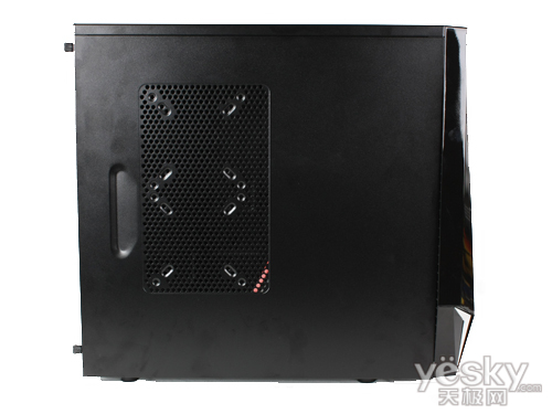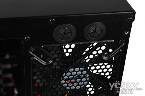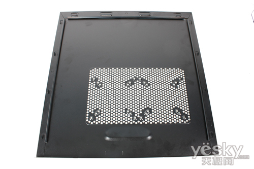 机箱的侧面板采取了TAC2.0的散热标准设计,侧板厚度经测量将近1mm厚,比其宣传的0.66mm要厚,在这点上还是比较厚道的。而且在散热孔的位置上可以安装两个60mm的散热风扇,拓展性不错。