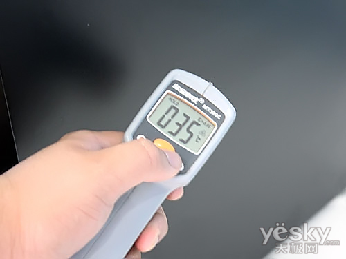 开机运行了一段之后,经温度测试器测试机箱的温度约为35°,并不算太高。到实际运行时候预计也在40°左右,符合TAC2.0的散热标准。