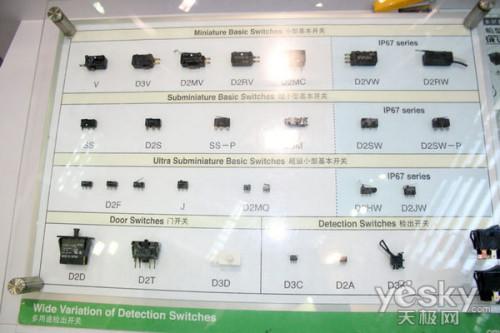 鼠标和电子展的关系在起初我们就谈到,那就是欧姆龙了,作为一家专业的电子元器件厂商,欧姆龙最为大家所熟知的就是他们的微动了,此次展台上摆出的民用的微动就是大名鼎鼎的D2F灰点,包括今年最火的入门级游戏鼠标SS的Kinzu就是用的此款微动。