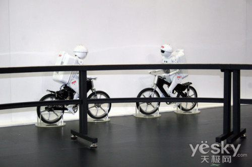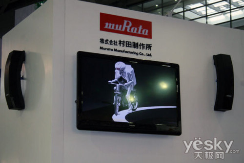 因为紧靠通往1号展馆的门口,欧姆龙和村田制作所可算是地段最好的展位,村田制作所此次展示了它在世博会上广受关注的骑车机器人,可爬坡,可过S弯道,体现了企业的实力。可惜的是除了摆放的2个样品,真正可以活动的机器人仅展示了不久就被收起了。