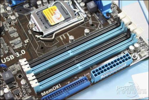 主板采用了支持DDR3内存模块设计,数据传输速率可达2200(超频)/1600 /1333 / 1066MHz,以符合最新3D图形、多媒体、因特网等应用所要求的高速运行带宽。主板还支持MemOK!功能,通过内存插槽旁边的GO Butto按钮,主板可以自动调节内存的参数到达可兼容的模式,立即让系统启动并执行。