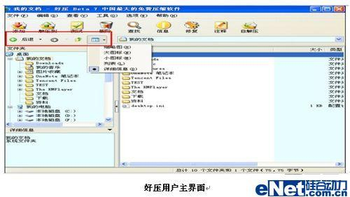 从软件主界面来比较,好压的主界面和我们过去常用的压缩软件比较相似,主界面功能图标多样,整体布局合理,并提供了多种查看方式和右侧树形目 录以及详细信息对话框,软件整体界面非常友好,对于用户来说很容易就能上手使用。而7-ZIP的主界面相比之下简洁明快,但是功能按钮比较少,对于新手来 说刚刚使用的时候难免茫然无措。