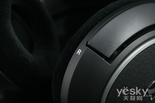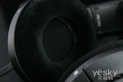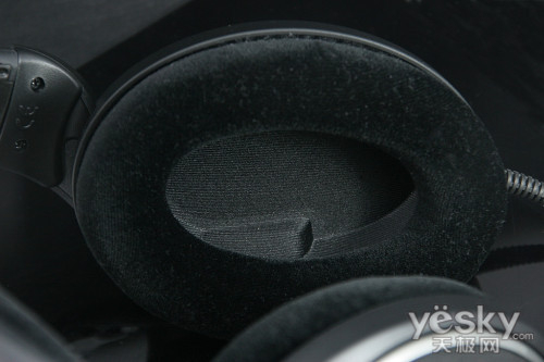 耳机的耳罩为非常舒适的天鹅绒质地耳垫,配合超大的耳罩设计,戴上头,即便是笔者这样的头大型用户,都不会感到丝毫的积压,即便是戴上眼镜,也不会觉得眼睛镜框被挤压变形,舒适度只有体验过的朋友才能明白其神髓所在。