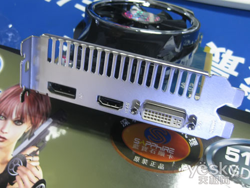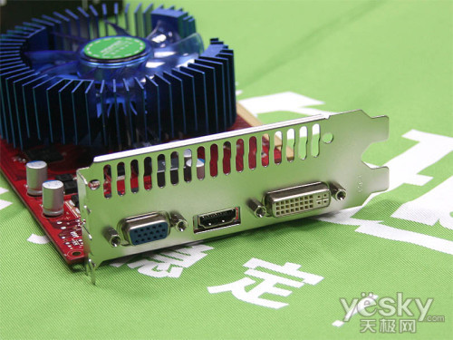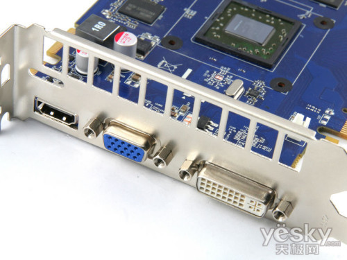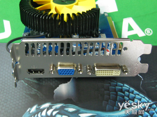 迪兰恒进HD5750恒金512的输出接口部分非常齐全,具备了DVI/VGA/HDMI三个最主要的输出,可以满足绝大多数用户的需求。在挡板的设计部分采用了单槽设计,有效节省用户的机箱空间。