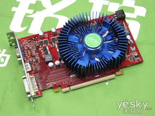 散热部分,铭瑄HD5750高清版II 512M显卡采用“炫蓝冰刀”散热器,具有温控调速功能,能够根据核心温度调节风扇转速,达到静音与散热效能双兼备,并大大延长散热器使用寿命。