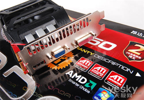 输出部分,铭瑄HD5750高清版II 512M配备HDMI/DVI/VGA完整接口方案,能完全满大部分用户的要求。