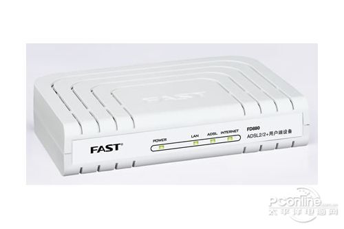 编辑点评:FAST FD880外型美观,在功能上,符合ADSL/ADSL2/ADSL2+标准,而且兼容性能卓著,还提供了语音分离器以及PVC自动匹配功能,使用起来非常方便,不论对于居家上网还是小型办公都是个不错选择。>>