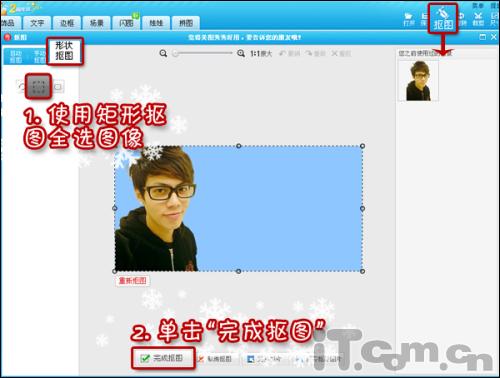 3、再次使用“抠图”功能中的“矩形抠图”,拖拽选框全选图像后,单击“完成抠图”。