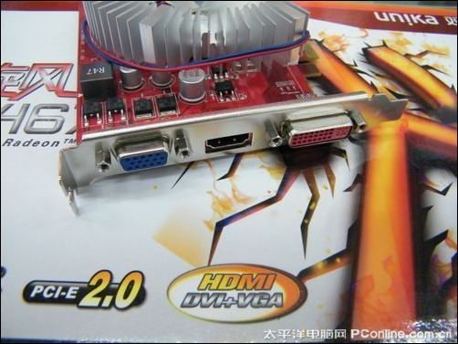 双敏火旋风HD4670 V512,输出部分,提供了VGA+HDMI+DVI的组合,高清和游戏通吃。
