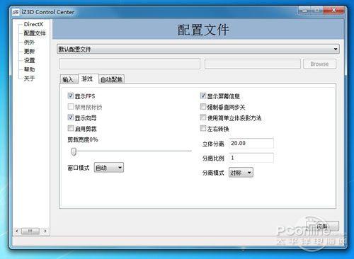 另外,在iZ3D驱动的对各种3D游戏的配置文件中,笔者发现了“Fraps”的身影!Fraps具有监视系统桌面的功能。这意味着,我们的win7桌面,也能够变成“3D”的!