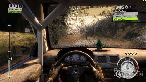 《dirt2》中,赛车掠过积水塘,飘洒的水雾模糊了你的挡板,那种感觉,就像你站在一个大型海洋公园的水族箱旁,观赏箱子里波光潋滟的水下世界——总之,你真的就“坐”进了驾驶舱,体感十足!