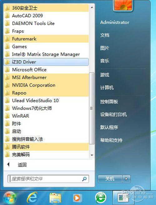 安装完成后,从系统的“开始菜单”的“所有程序”里,找到“iZ3D Driver”