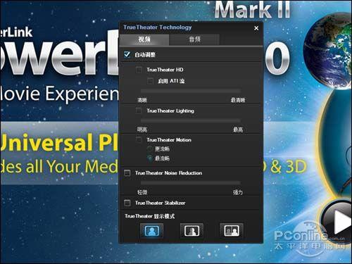 3D设置页面如上图,PowerDVD的3D按钮设置在了电影标签的右下角,点击后便进入到设置面板。可以看到在这个面板中,PowerDVD提供了不同的3D显示显示模式,分别对应3D-Ready HDTV、120Hz Time-sequential 3D LCD、Micro-polarizer LCD。我们选择120Hz Time-sequential 3D LCD即可。