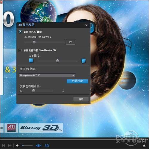 设置完了以后,接下来我们就开始畅享我们的3D电影之旅了。无论是电脑的视频还是放电脑光驱DVD,用POWER DVD10,完成以上设置就能实现3D家庭影院了。