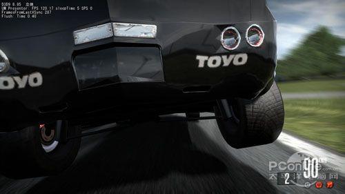 追尾的效果也很出众。如果说2D屏幕中,赛车只是单纯的数字图像,那么现在,对手的车尾似乎被赋予了“质量”,你能感觉到他重重的“砸”在了你的电脑桌上!