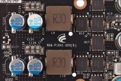 供电设计方面,该显卡内置了4+1相的供电,并且选取了高质量的封闭电感与全固态电容,每相配备了3个8pin封装的MOS管,供电电阻比大众化6pin封装的更低,用料与做工均让人感到满意,相信该卡还有一定的超频潜能。