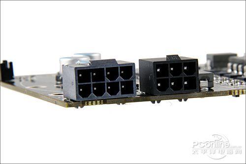 由于采用了双核心设计,所以需要的更强悍的外接供电,该卡需要外接一个8pin和一个6pin电源以满足供电需求。另外,官方资料显示,HD5970最大功耗为294W。