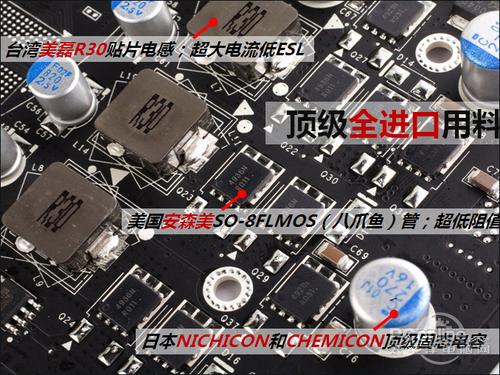 整卡采用黑色的PCB、全固态电容的设计。供电部分采用3+1相供电的设计,使用了R30的铁素贴片电感、8脚MOS管。低通电路部分,保持了完整的设计;接口采用了金属屏蔽罩,进一步减少显卡信号输出的干扰。