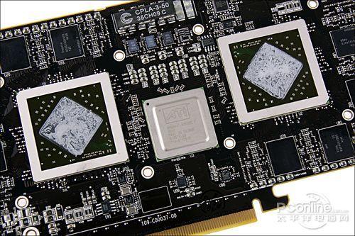 HD5970采用PCIE桥接器来进行GPU间的互联传输