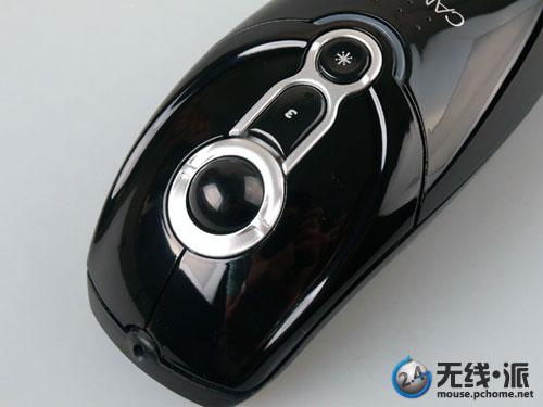 下图中我们可以看到的按键分别为左键、右键、轨迹球、3号键以及一个带有“*”号的按键。它们的功能分别是,轨迹球可以进行光标的移动,而且可以任 何方向,比常规的滚轮设计更加实用;轨迹球上方一个带3字的按键,功能为空中操作时的F5刷新或者退出功能;而再上方的一个按键则是激光指示灯的开关。按 键功能非常丰富,适合多用途使用。