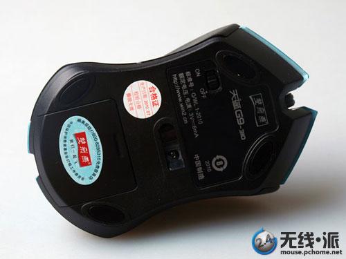双飞燕亮面行G9-310 2.4G无线鼠标引擎采用了双飞燕独有的节能胜激光技术光学传感器,更加省电,并且拥有更强的过界能力,令鼠标能够在微尘玻璃以及高光亮面瓷砖上面使用。引擎上方,提供了一个电源开关,我们长时间不用的时候,可以选择关闭。