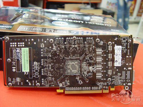 散热部分,蓝宝石 HD6870 1G DDR5采用了双插槽一体式的散热设计,让显卡拥有更大的散热空间,在有效节省PCB空间的同时,能够加速核心和周边元件的整体散热效能。