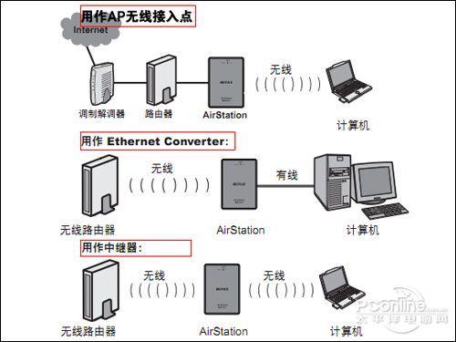 在便携电脑,智能手机大肆流行的现在,如何把家庭、办公室里的旧有固定线路的网络扩展成无线网络呢?写字楼里不同的WIFI信号混淆在一起,信道拥挤无线网络效率低,怎么才能提高无线网络的速度?以前的旧设备只有以太网接口没有WIFI接口,怎么才能让它们连上无线网络,今天请随PConline网络频道来看看来自buffalo的双频多功能便携无线接入点WLAE-AG300N