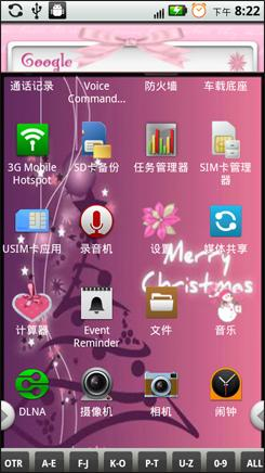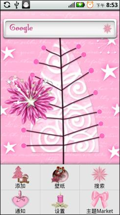 粉红的气息、别致的圣诞树和星星、可爱的系统图标。这套主题非常适合天真浪漫的少女系Android手机用户。