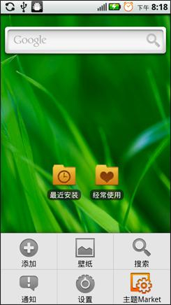 点击主题Market便可进入主题市场,这里可以方便地通过点击功能--添加本地主题来加载SD卡里面的apt格式主题。点击已安装主题则可以选择预览、应用和删除,同样也是十分方便。主题商店和主题搜索功能可以帮助用户寻找各种特色的主题并直接下载应用,不过对流量可是个不小的考验。