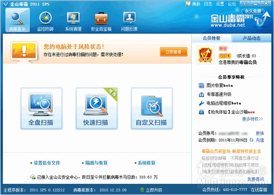 新增网购安全防护 金山毒霸2011 SP5发布