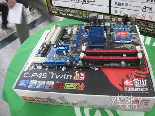 七彩虹战旗C.P45 TWIN就是两代内存都支持,此款主板商家报价499元,基于Intel P45+ICH10的南北桥芯片组合,拥有1600/1333/1066/800MHz前端总线,可全面支持英特尔LGA775架构全系列处理器,与奔腾E与赛扬处理器。