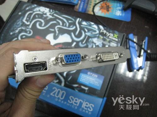 在输出接口方面,影驰GT220加强X2版显卡提供DVI+VGA+HDMI 3种接口,满足不同场合需求,可以满足所有消费者的需求。