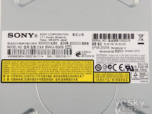 索尼BWU-500S蓝光刻录机标示铭牌
