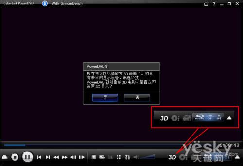 安装了PowerDVD软件之后,插入蓝光光盘系统会自动播放。对于支持3D格式的媒体,用户首次使用还会弹出3D设置选项。