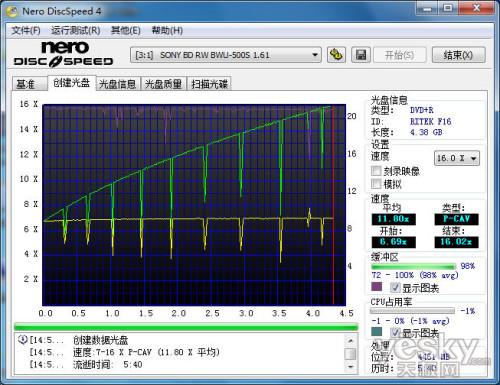 Nero DiskSpeed创建光盘测试