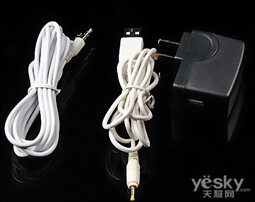 魅格PM800无线耳机的配件:音频线、电源连接线、充电器。