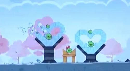 在《愤怒的小鸟》情人节版中,原版的绿树会被渲染成浪漫的粉红色,“猪头们”的隐身之处也布置成了 蓝色的心形,就连绿色的猪头也带上了可爱的红色蝴蝶结。而游戏的主角——“小鸟们”的装扮更是可爱至极。